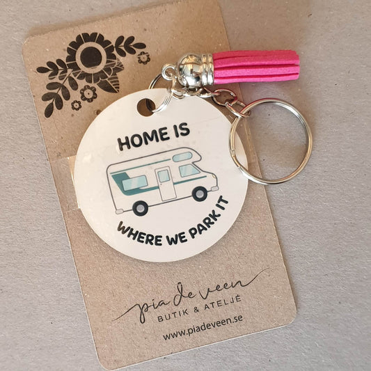Rund nyckelring-Home is where we park it.