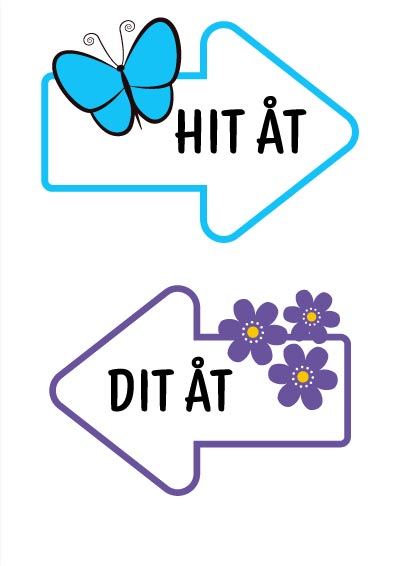 Skriv ut sidorna, helst på lite kraftigare papper (jag köpte mina HÄR) och klipp ut dem efter de streckade linjerna runt skyltarna eller längs mittlinjerna på arken.