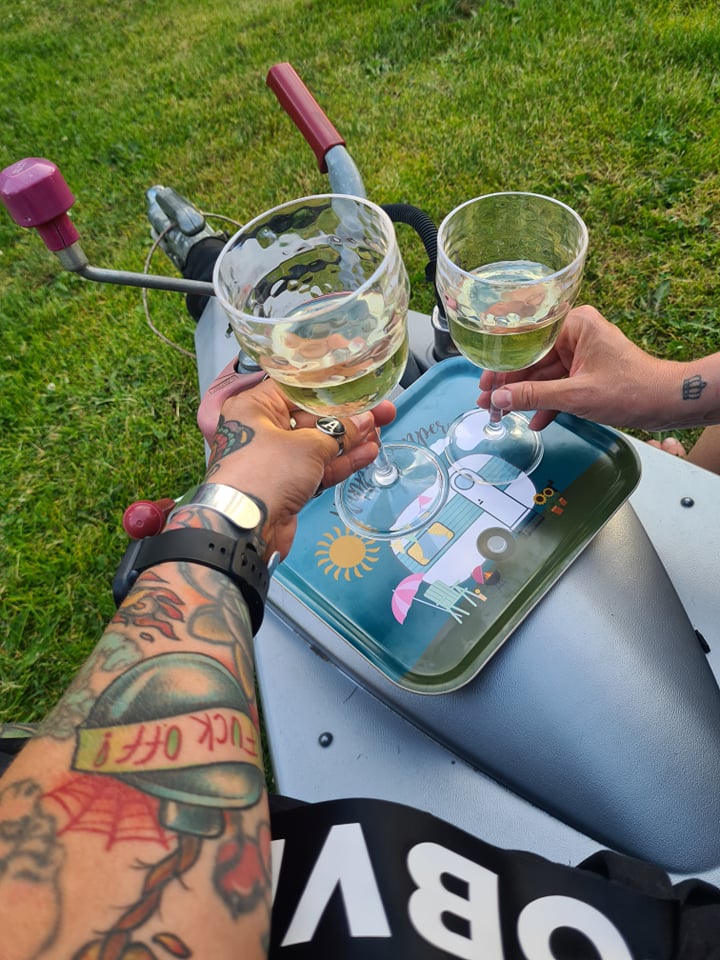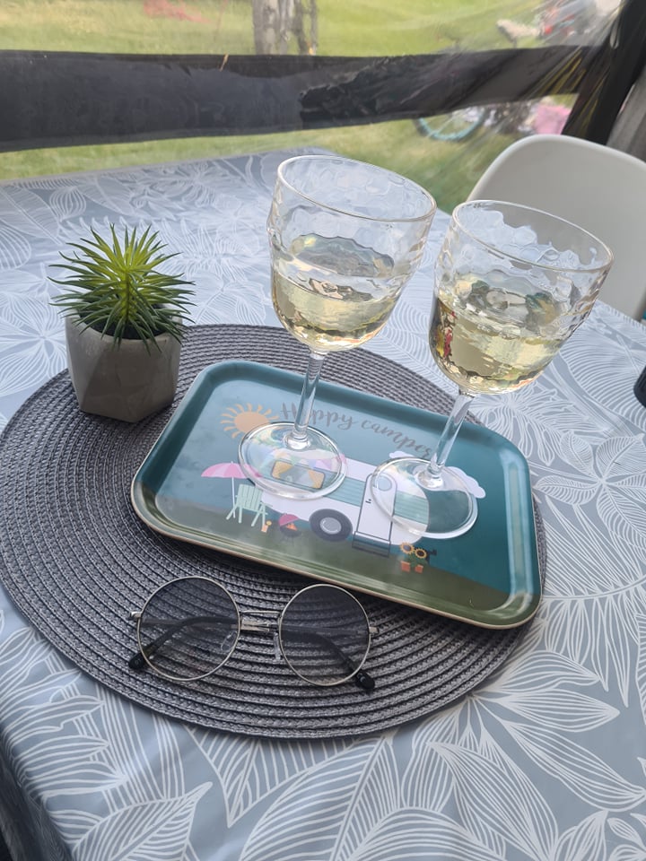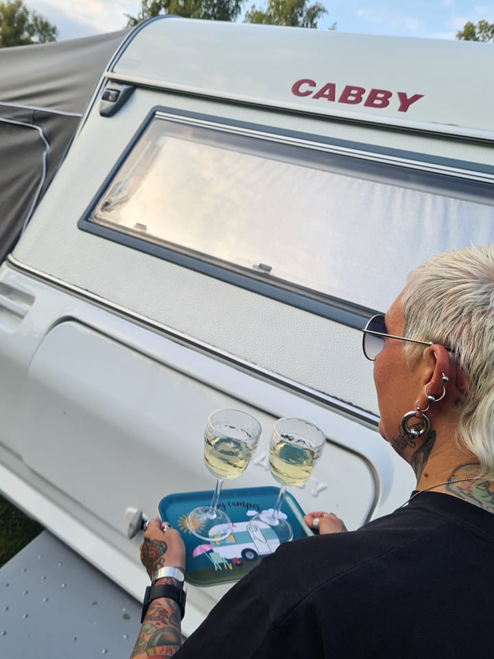 Den perfekta brickan att ha i husvagnen för alla lyckliga husvagnsägare. Lagom storlek för kaffet och mackan eller varför inte en kall öl och en skål snacks.