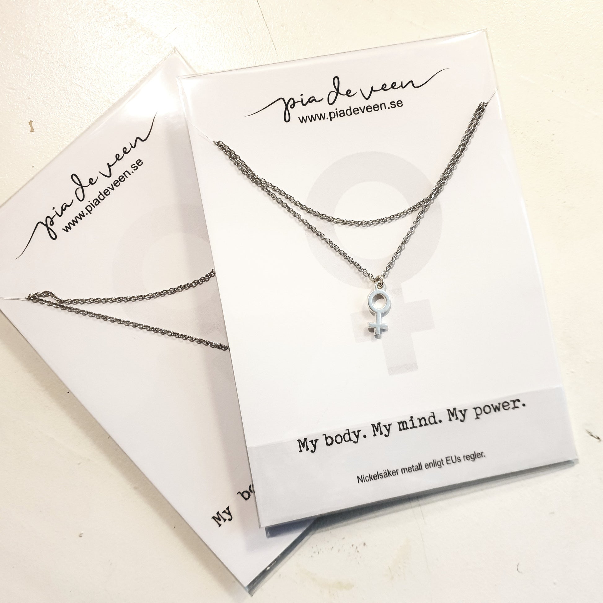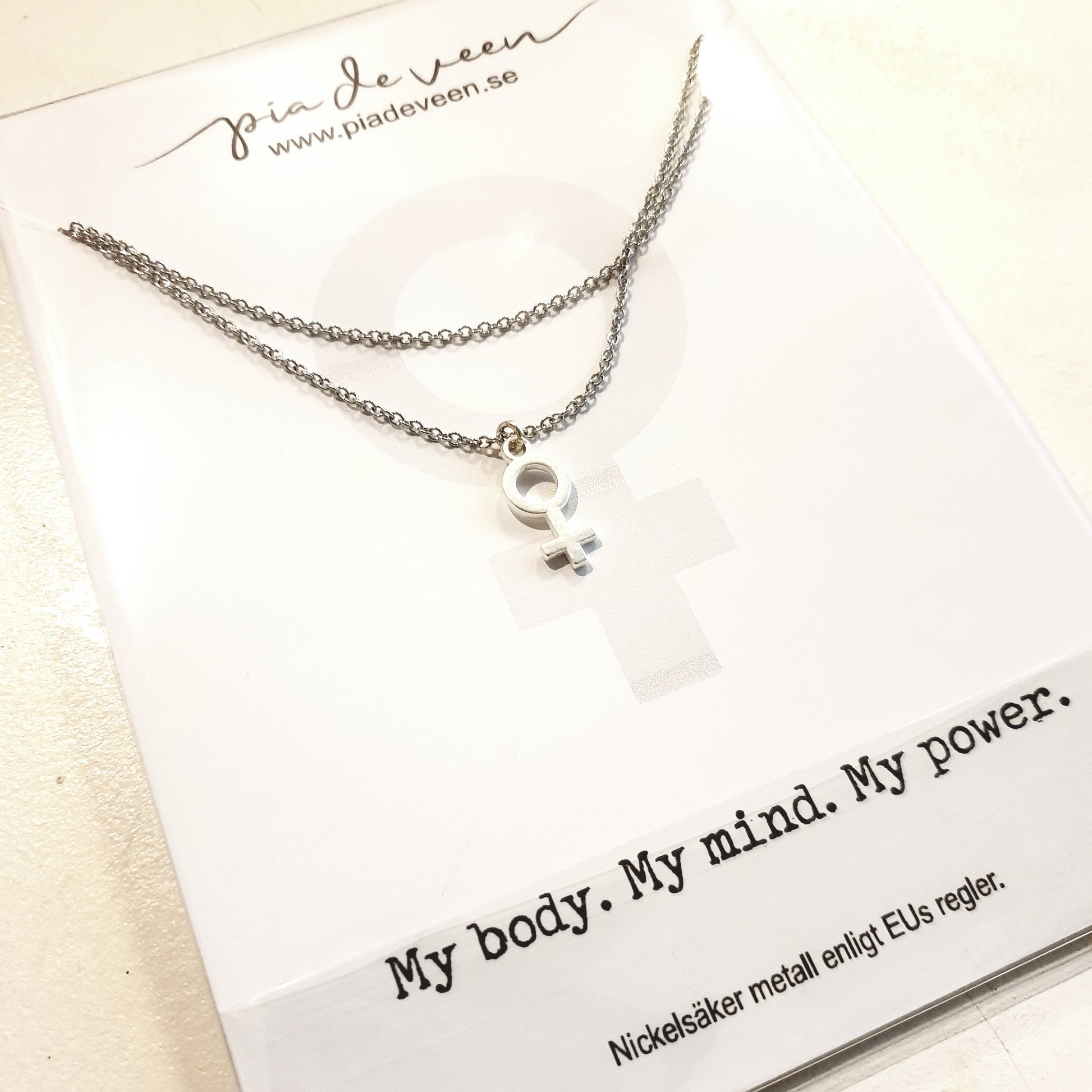 Halsband med symbolen för "kvinna". Smycket för den starka tjejen/kvinnan som står upp för sig själv. My body. My mind. My power.