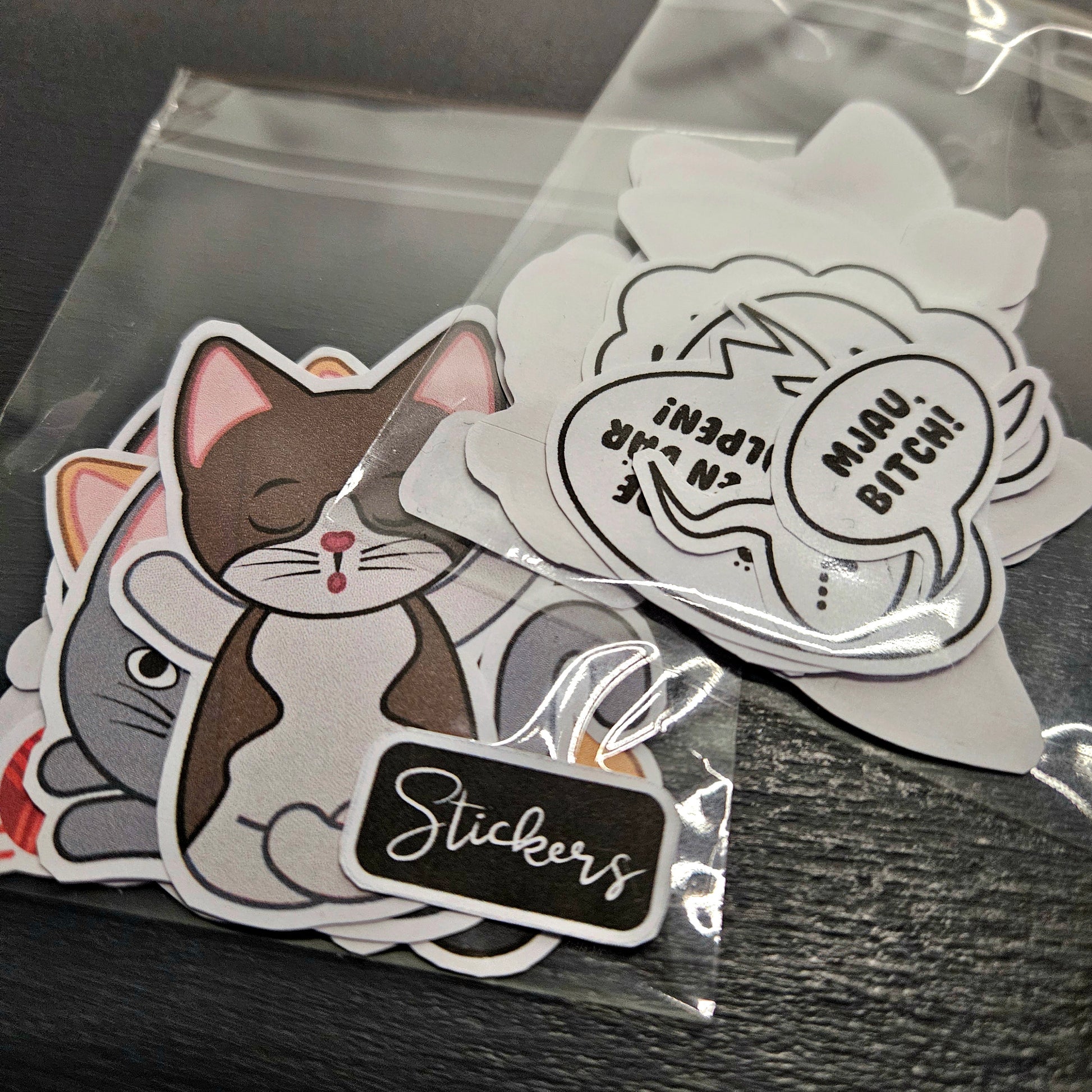 Klistermärken med coola katter. Det finns 5 stycken olika kattkompisar i varje förpackning med medföljande pratbubblor.