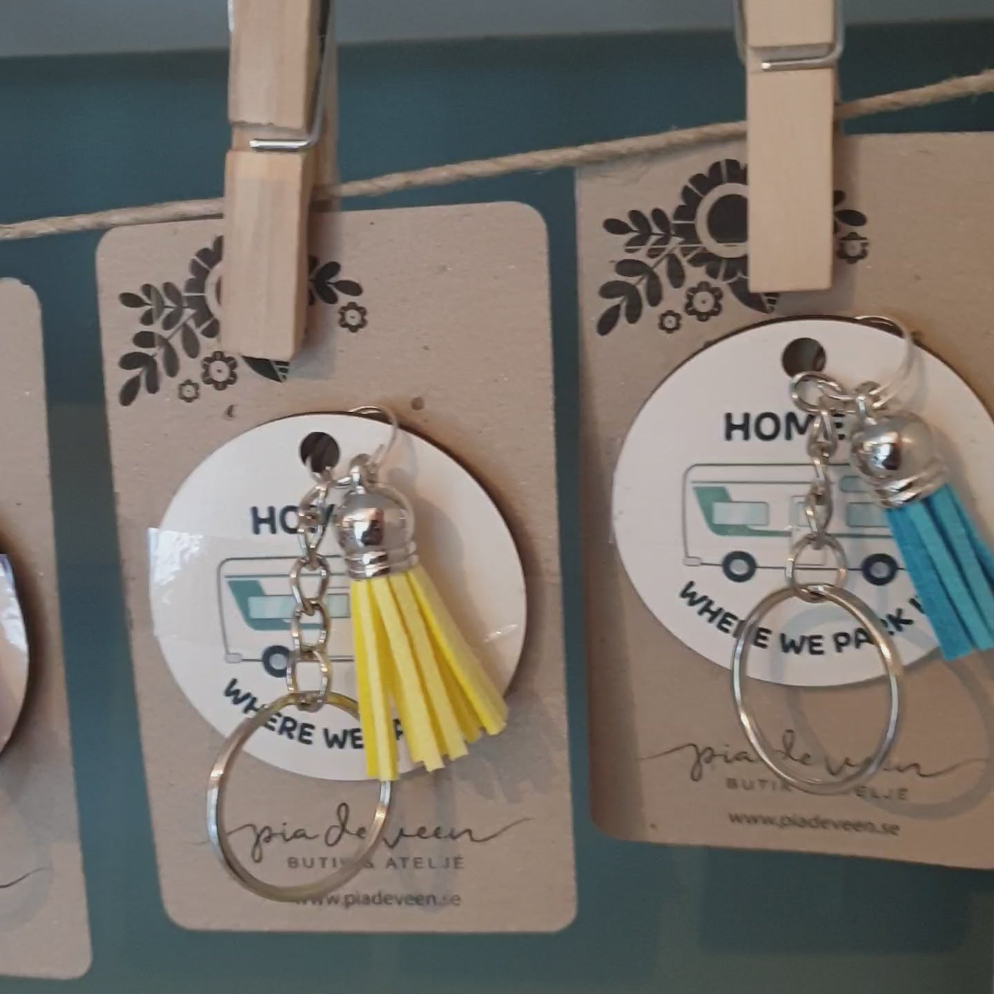 Nyckelring-Home is where we park it. Den perfekta nyckelringen för nyckeln till husvagnen.