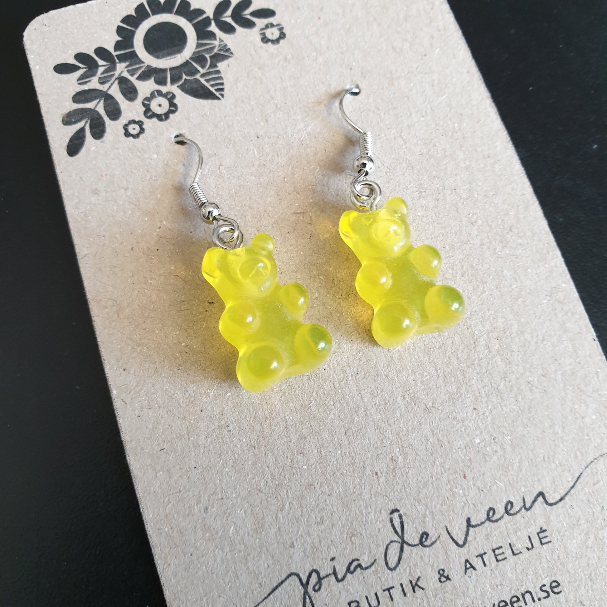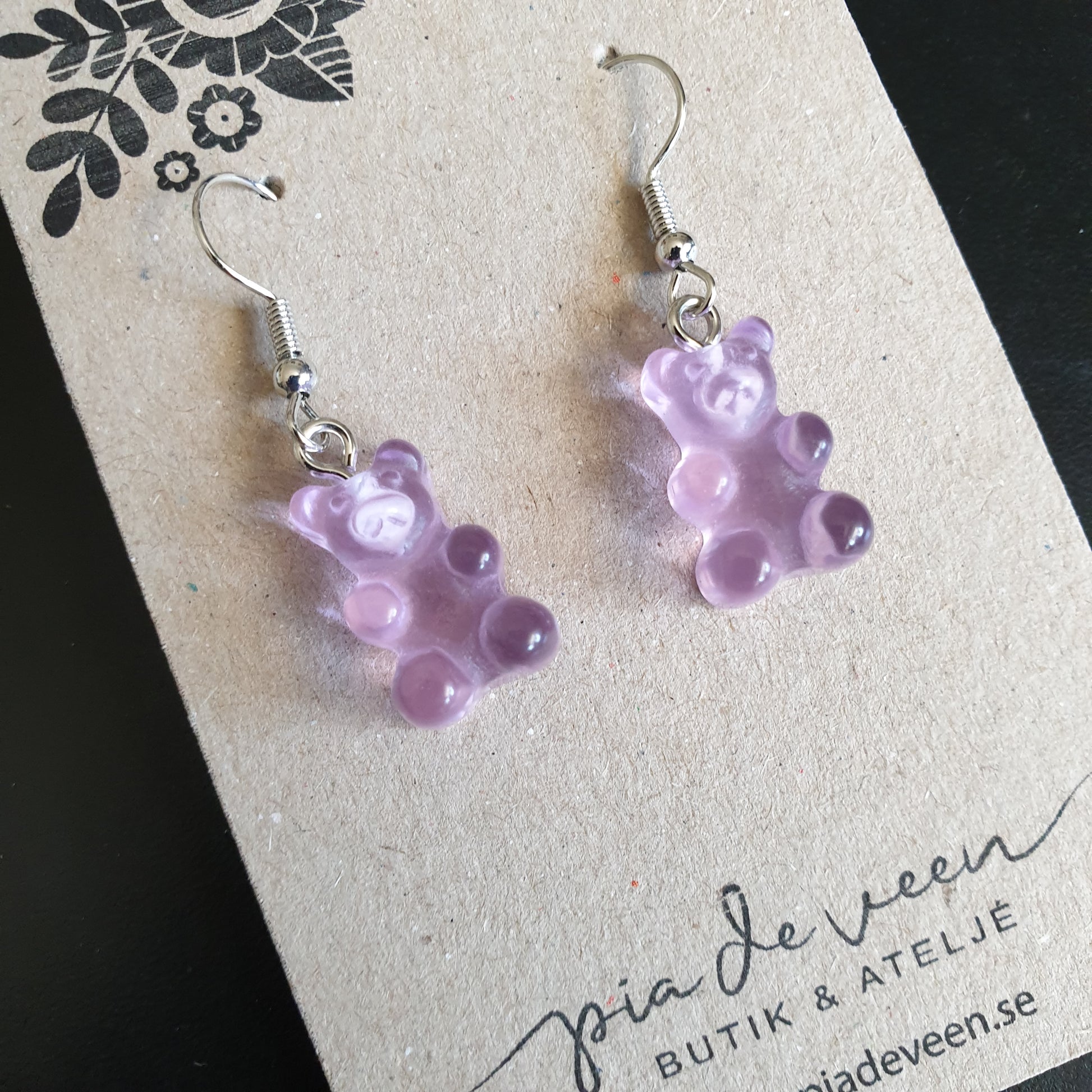 Söta, små godisbitar i öronen för oss godisråttor. Väldigt lätta att bära då de knappt väger någonting! Dessa små björnar är tillverkade i akryl. Finns i olika färger. Vilken är din favorit?